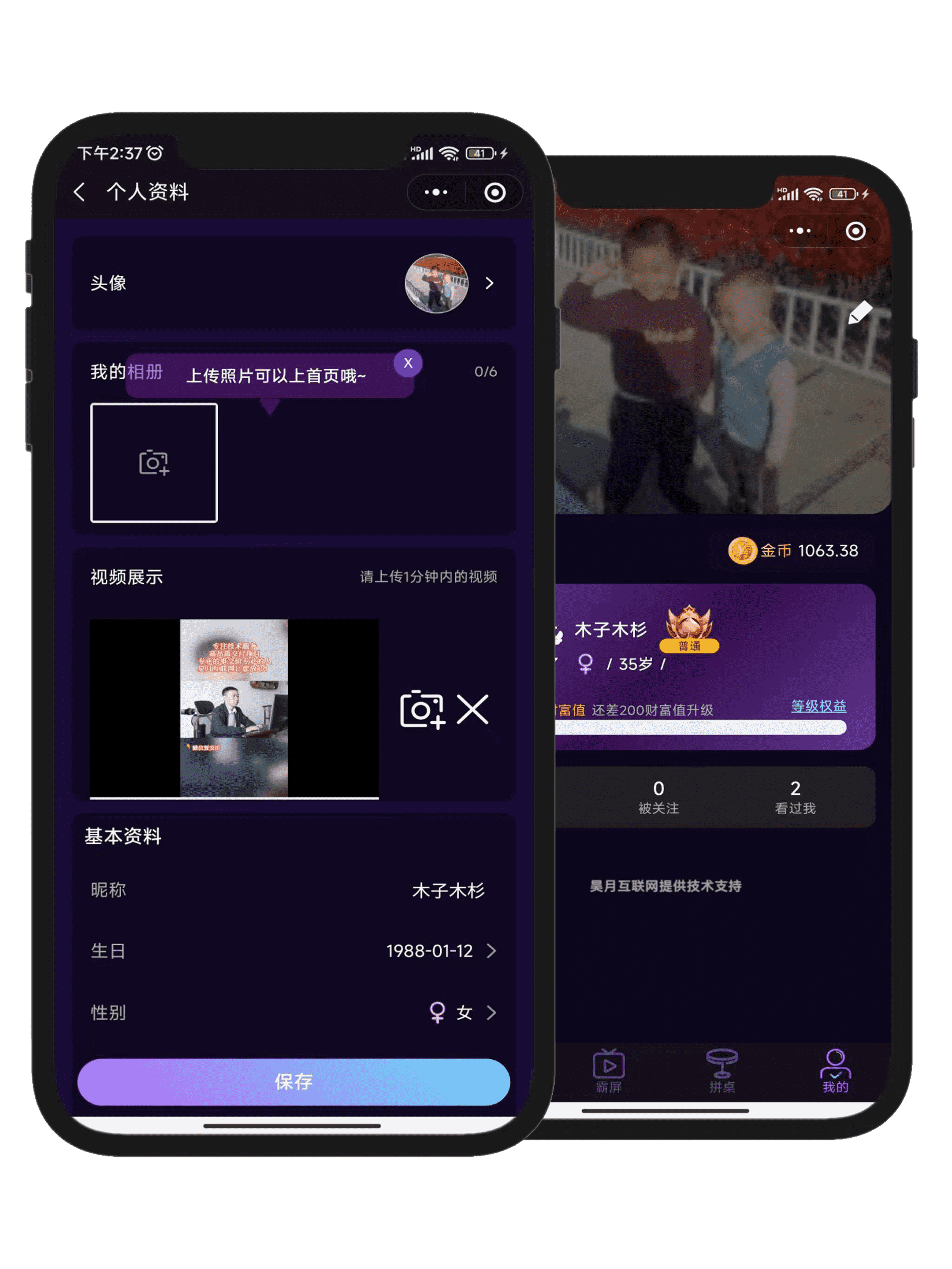 上传我的相册,视频展示